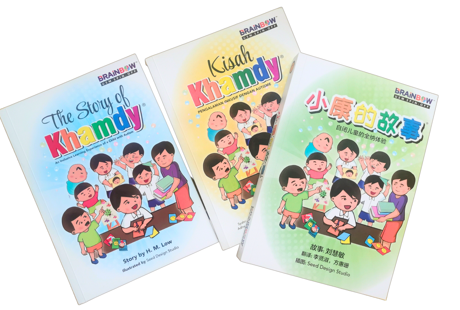 The Story of Khamdy® is a reference book about the story of a child named Khamdy with autism growing up in an inclusive environment. The book is available in English, Malay and Mandarin version. This book is full-colour and has 429 pages, including more than 100 strategies for teaching children with autism identified by inclusive education experts from Universiti Sains Malaysia and collaborators.